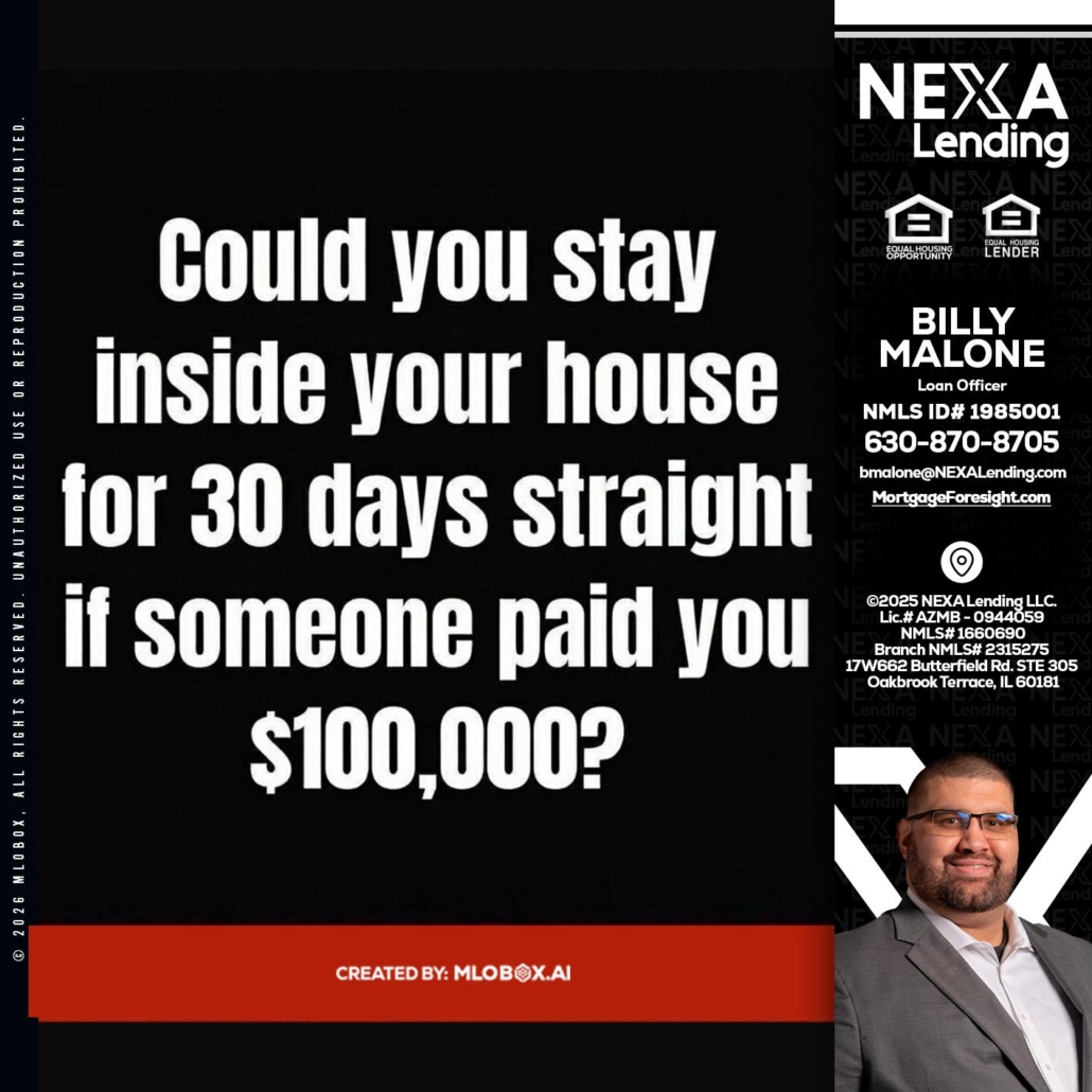 Hi, my name is Billy Malone. I’m a Loan Officer with NEXA Lending LLC., offering personalized mortgage solutions, fast customized quotes, great rates and service with integrity.