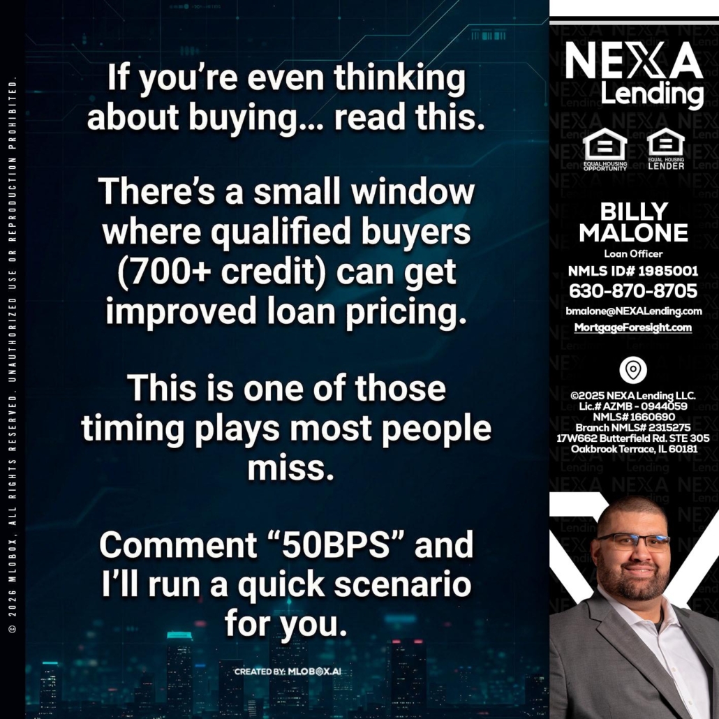 Hi, my name is Billy Malone. I’m a Loan Officer with NEXA Lending LLC., offering personalized mortgage solutions, fast customized quotes, great rates and service with integrity.