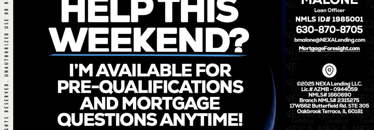 Hi, my name is Billy Malone. I’m a Loan Officer with NEXA Lending LLC., offering personalized mortgage solutions, fast customized quotes, great rates and service with integrity.